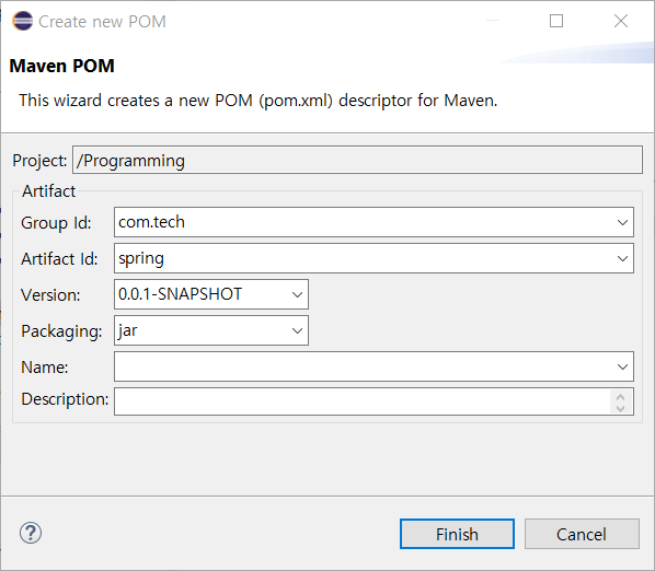 아래와 같이 pom.xml 파일이 만들어진 것을 확인할 수 있습니다.