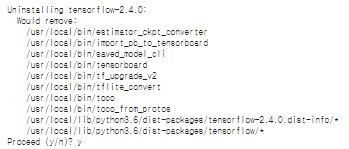 이제 이 버전을 1.x 단계로 낮추기 위해서 아래의 명령어를 이용해 현재 사용하는 텐서플로우를 삭제하고 다시 깔아주도록 하겠습니다.
