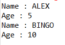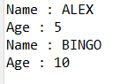 System.out.println("Name : " + item.getName() + "\nAge : " + item.getAge());