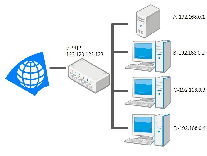 우리가 접속하는 Internet은 공유기를 거쳐 내부 네트워크로 연결되어있는 device에 연결됩니다.