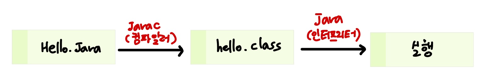 -> java를 통해 .class 파일을 인터프리터 방식으로 한줄씩 실행