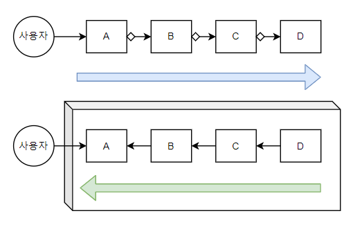 따라서 흐름이 역순이 되었음을 알 수 있습니다.